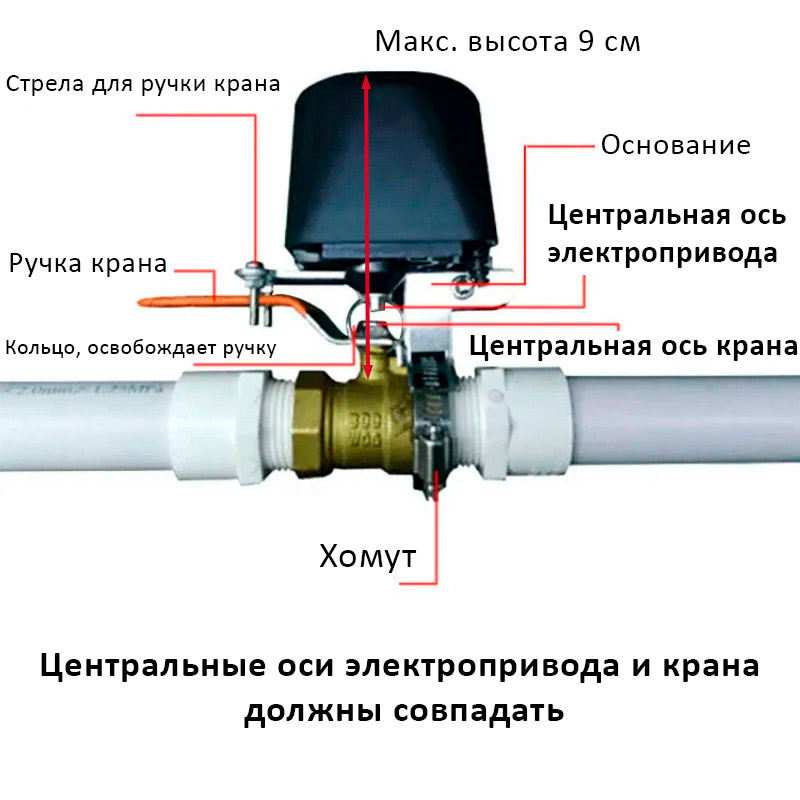 Другие названия: умный водяной клапан, актуатор шарового крана, клапан подачи воды, универсальный привод для крана, манипулятор шарового крана для дистанционного управления водой и газом, сервопривод для крана воды, также известен как модель WV-B от MOES